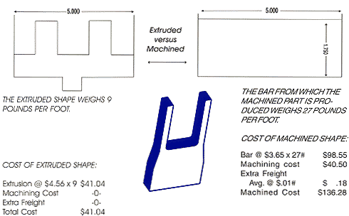 the finished extruded shape weighs 9 pounds per foot. To machine